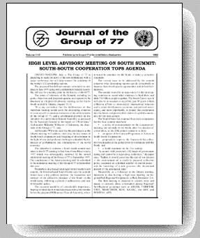 The Journal of the Group of 77 is published at the United Nations Headquarters by the Office of the Chairman of the Group of 77 in New York, in collaboration with the Inter Press Service (IPS) news agency and the Third World Network.